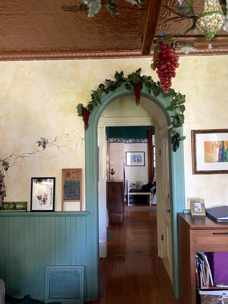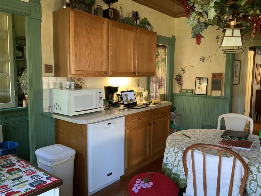 The layout made no sense, with the fridge shoved into a corner like it was being punished and zero prep space anywhere you actually needed it. And then there was the grape motif—yes, grapes. The backsplash, wall painting and trim featured a very committed theme. Now, I’ll give it props for referencing the actual grapevines growing outside the kitchen window (which I love), but inside? It was doing nothing for the space except making me crave wine at 10am.